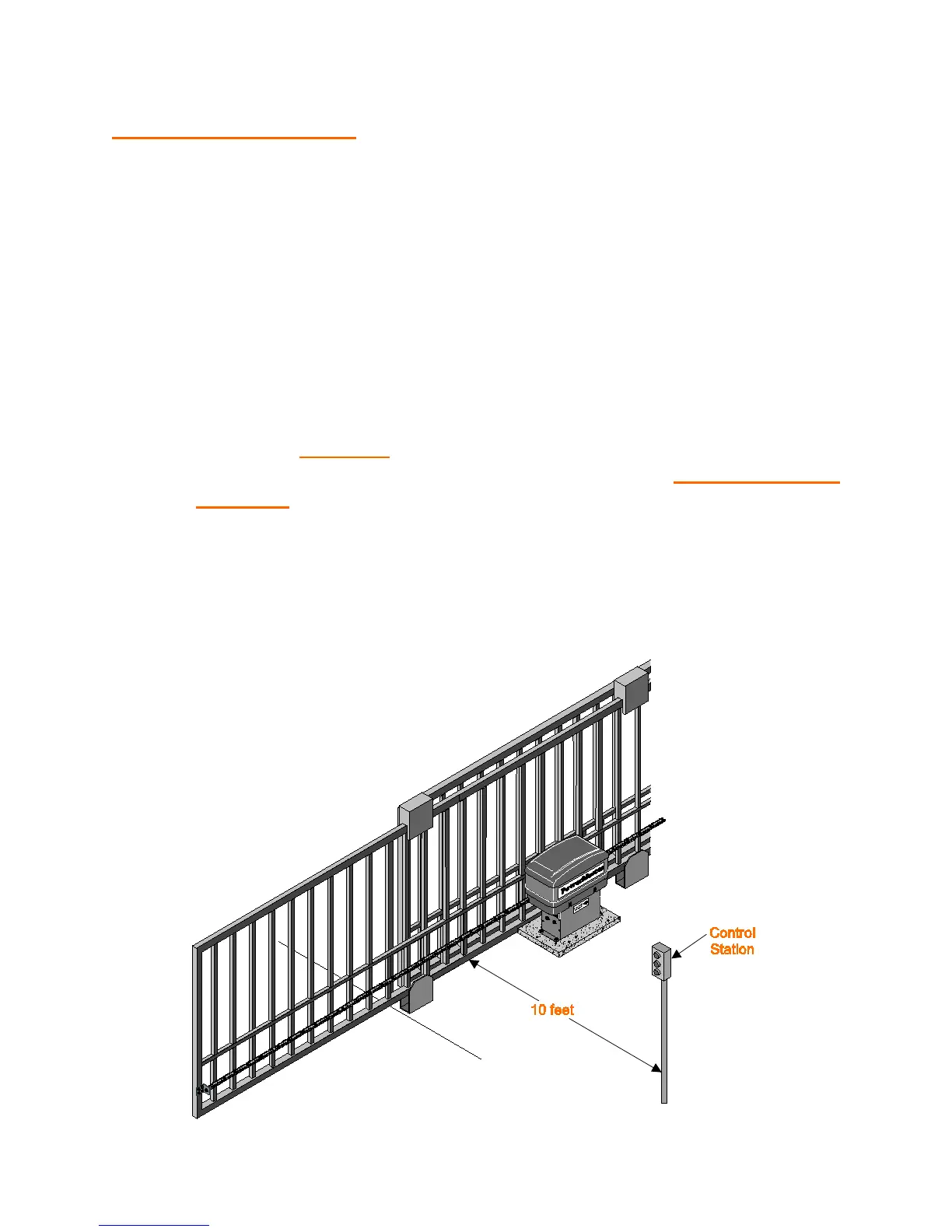 ▲ 5. Locate the controls at least 10 feet from the moving gate so that the