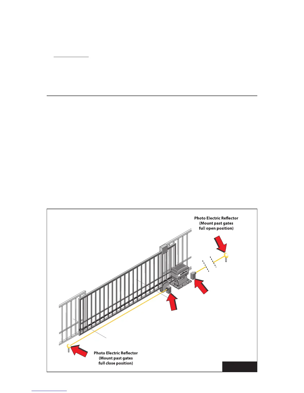 1. Install photoelectric cell as close to inside of gate as possible. Photocells should be