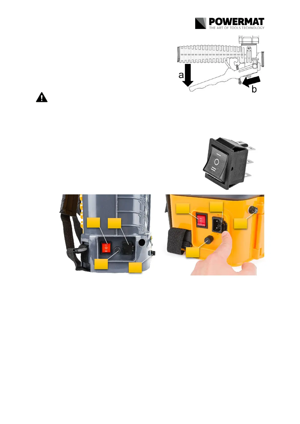 To start the sprayer pump, switch rocker switch (1) to position I or II.