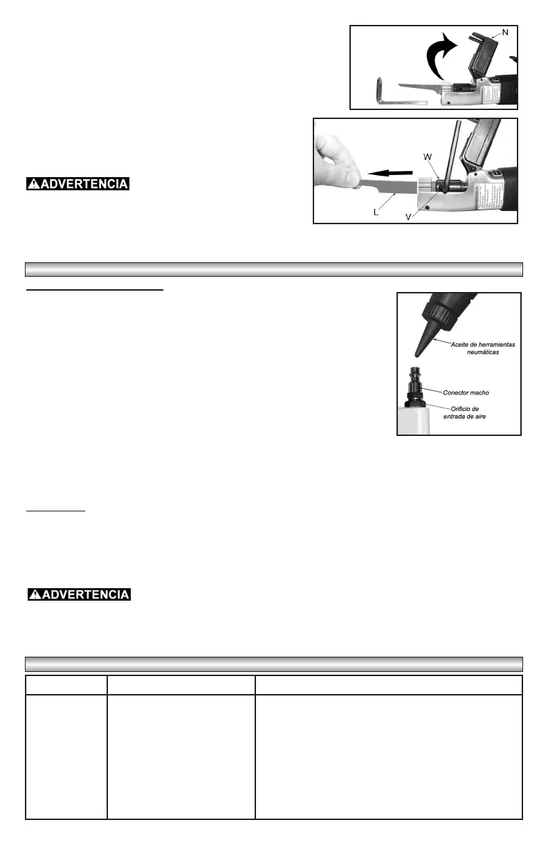 exceso de aceite. NOTA: Si la herramienta funciona de forma lenta luego de haberla lubricado, es