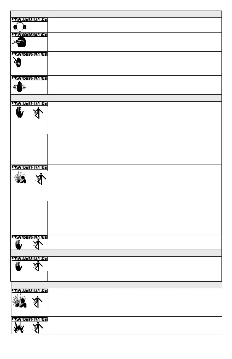 RISQUE DE PERTE AUDITIVE. Portez toujours des protecteurs auriculaires approuvés ANSI