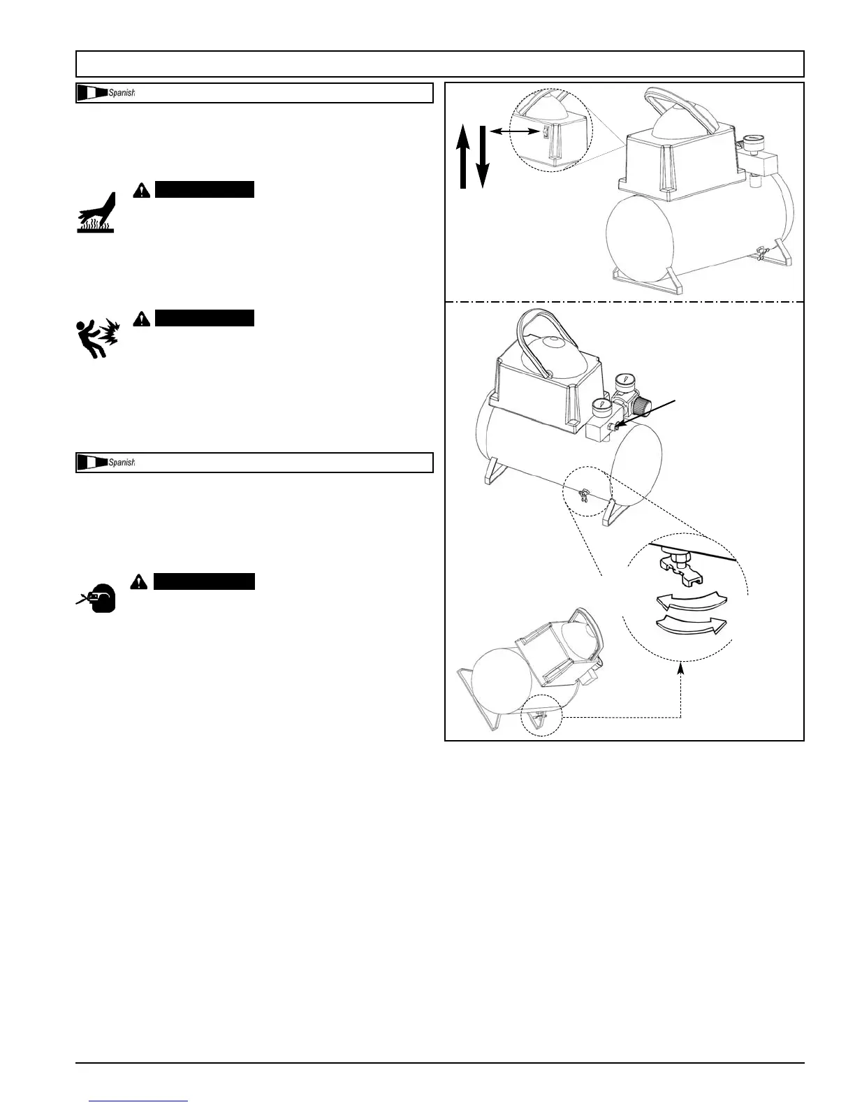 quemaduras y otras lesiones, NO toque el compresor