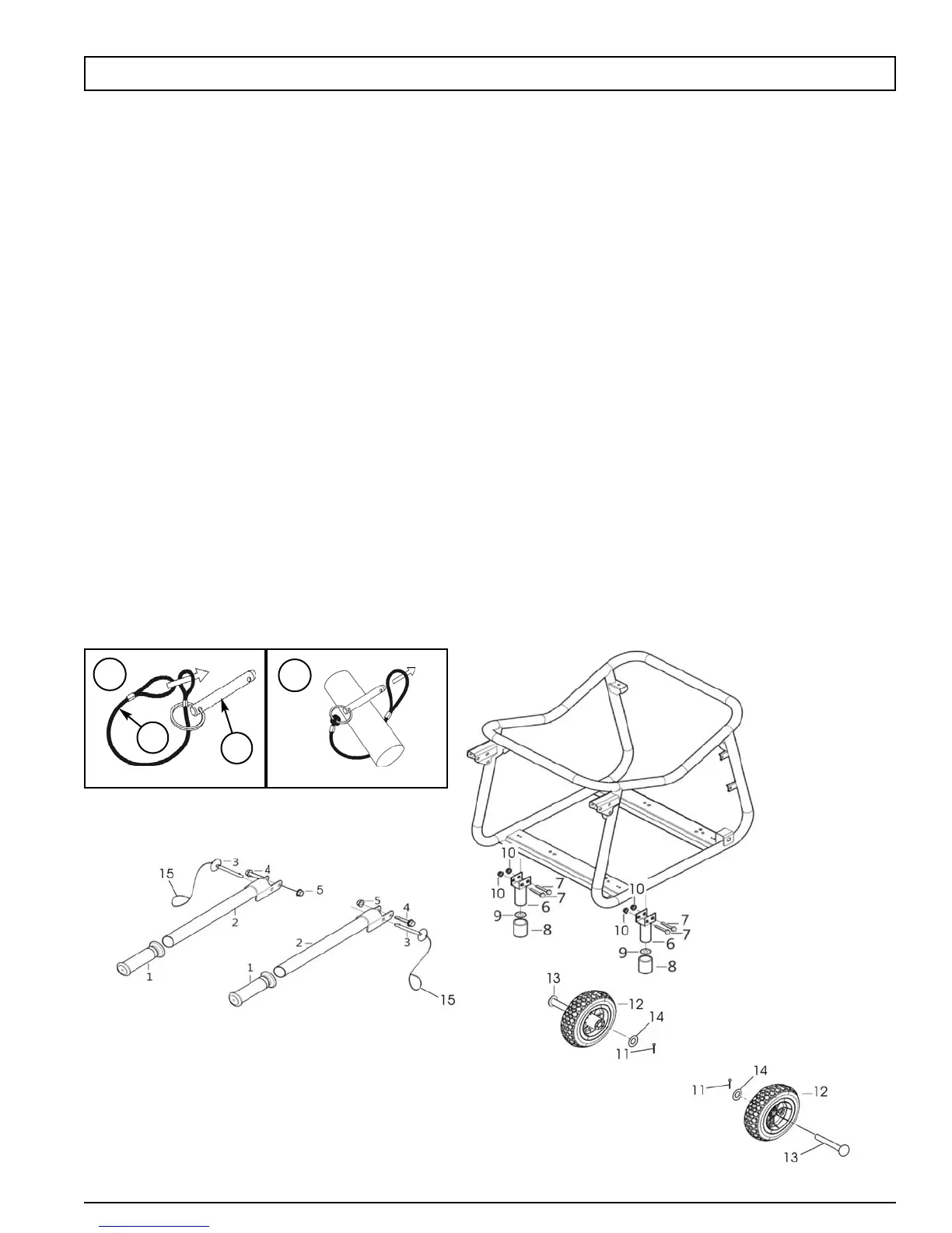 1. Bloquee arriba el fin de alternador del generador para instalar juego de rueda.