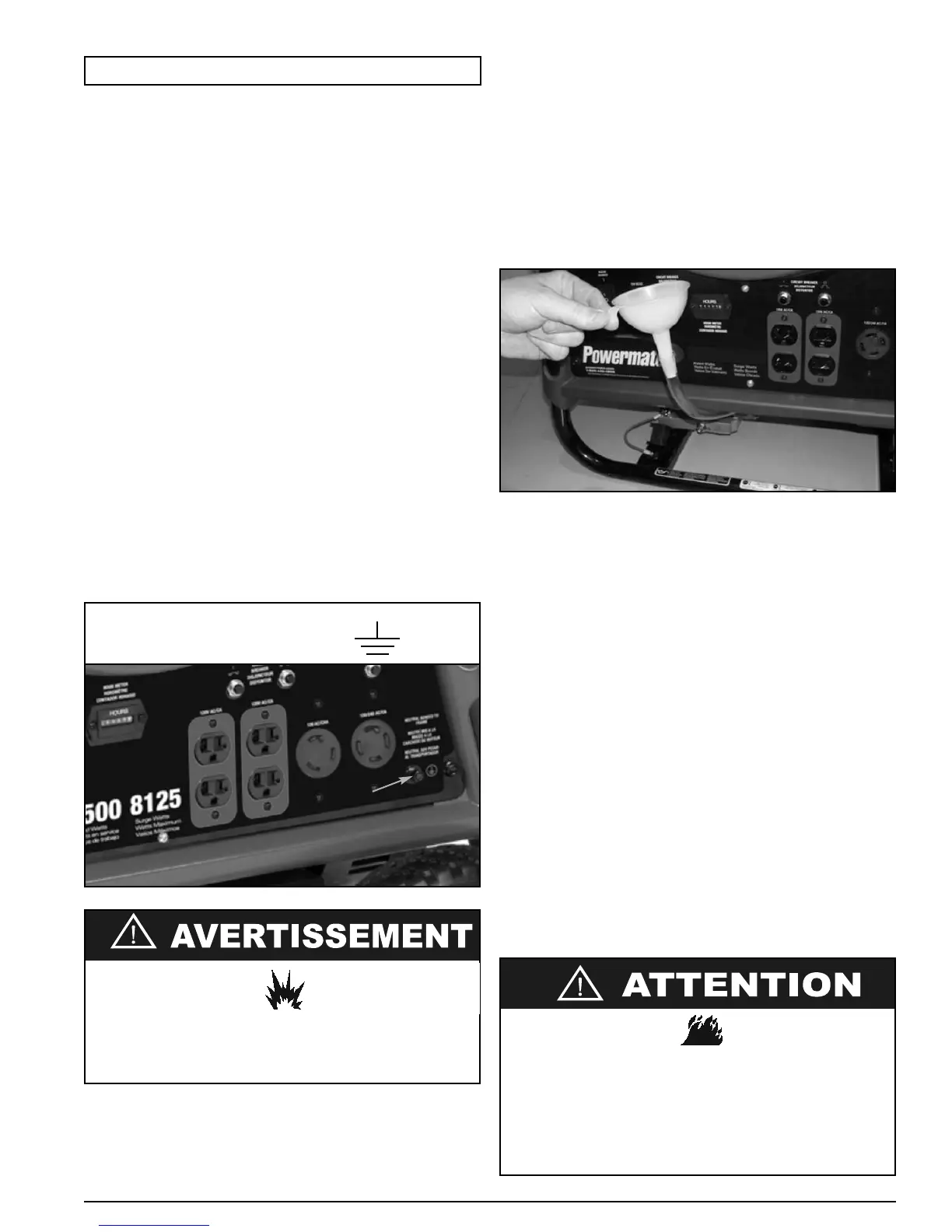 génératrice n'est pas équipée d'une prise GFCI, des ensembles