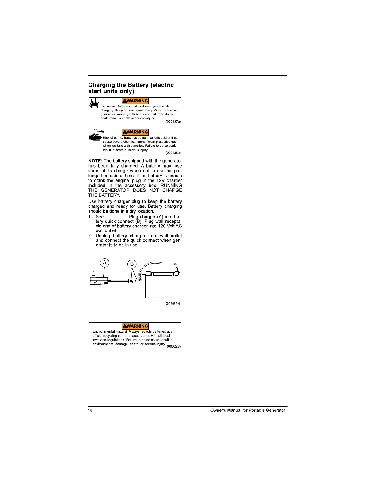 Powermate PM9400E - Battery Charging Procedures