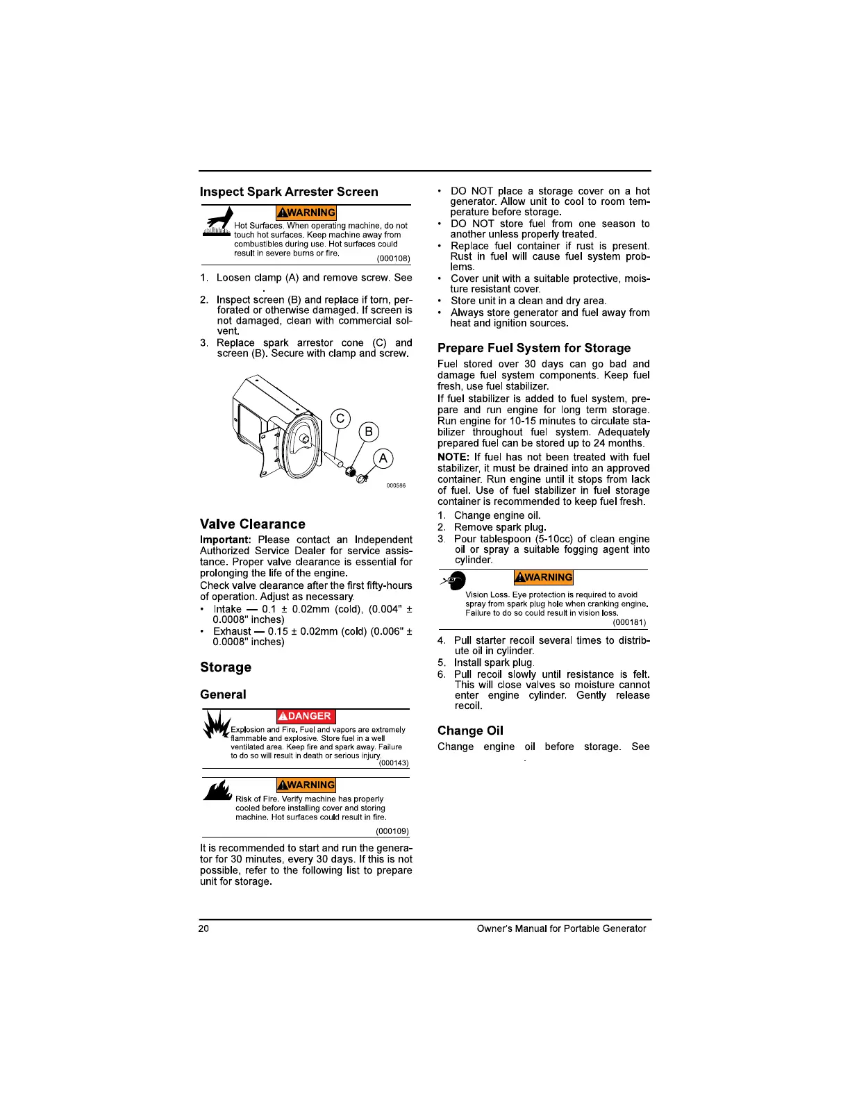 Powermate PM9400E - Spark Arrester, Valve Clearance, and Storage Prep