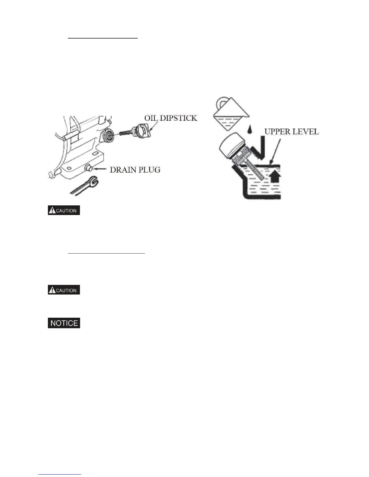 1. Remove the oil dipstick and drain plug to drain the oil.