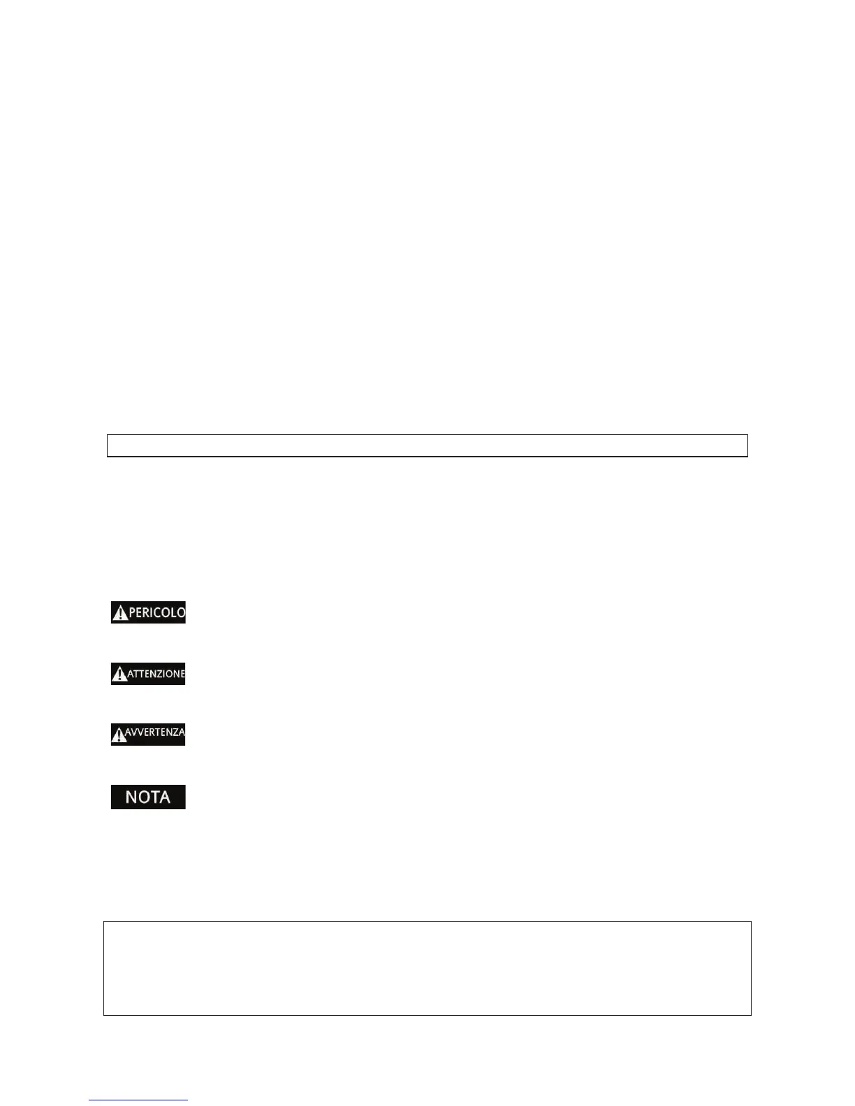 seguenti parole: PERICOLO, ATTENZIONE o AVVERTENZA.