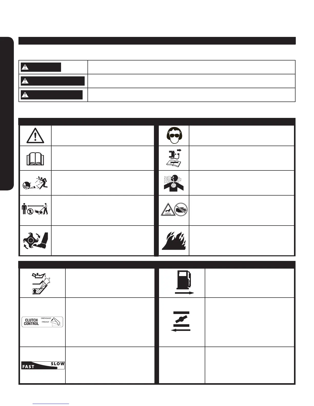 Les symboles suivants peuvent se retrouver sur votre motobêche. Assurez-vous de les lire attentivement et de comprendre