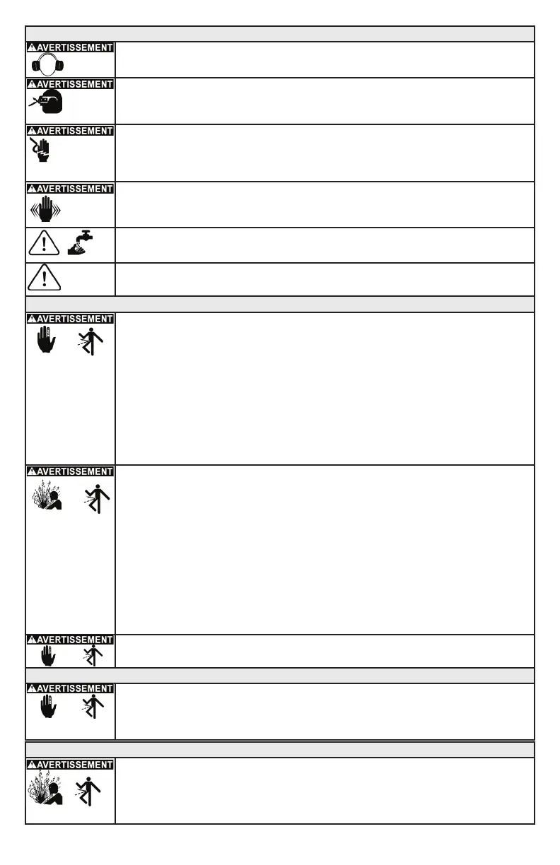 RISQUE DE PERTE AUDITIVE. Portez toujours des protecteurs auriculaires approuvés ANSI