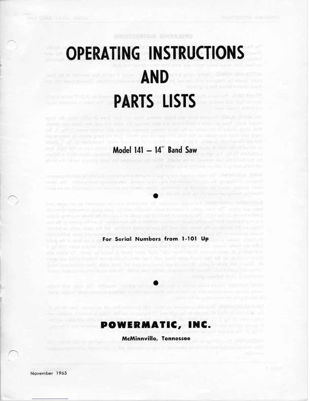 Powermatic 141 - Operating Instructions and Parts List Introduction