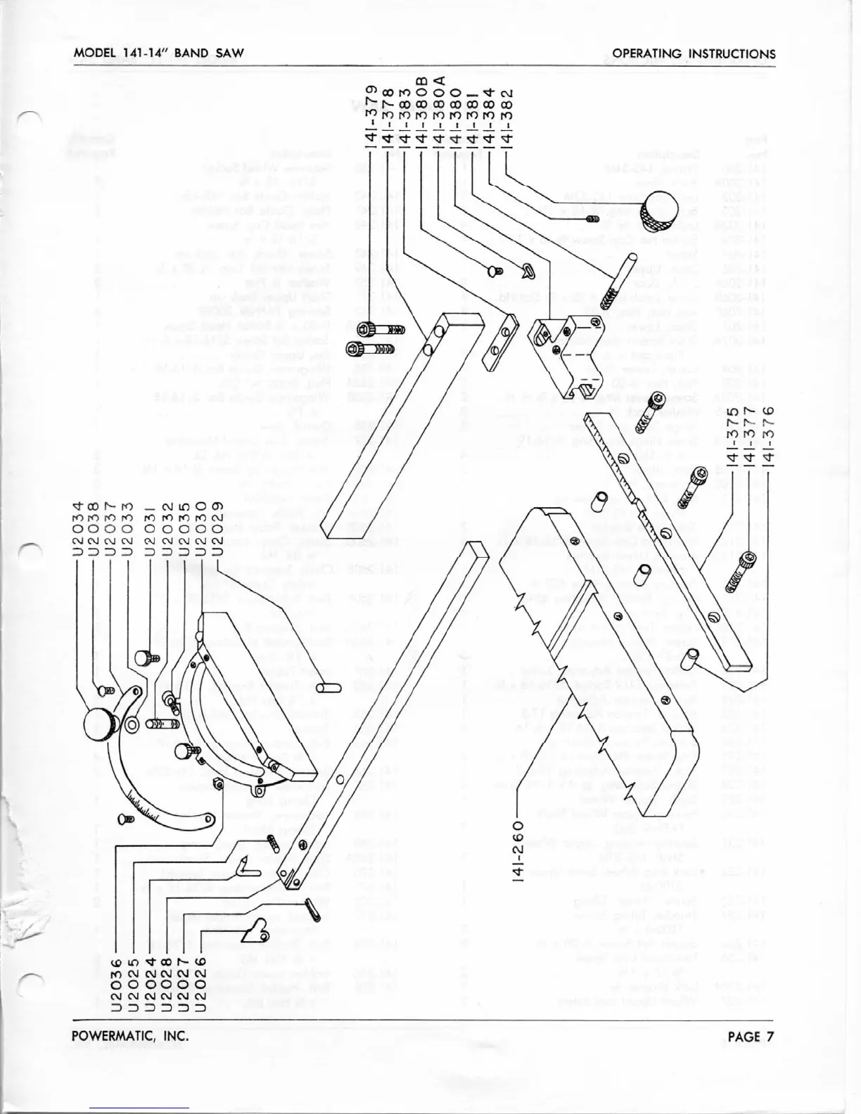 Powermatic 141 - Parts List - Bearings, Shafts, and Adjustments; Wheel Shaft and Bearing Parts; Tension Adjustment and Motor Parts