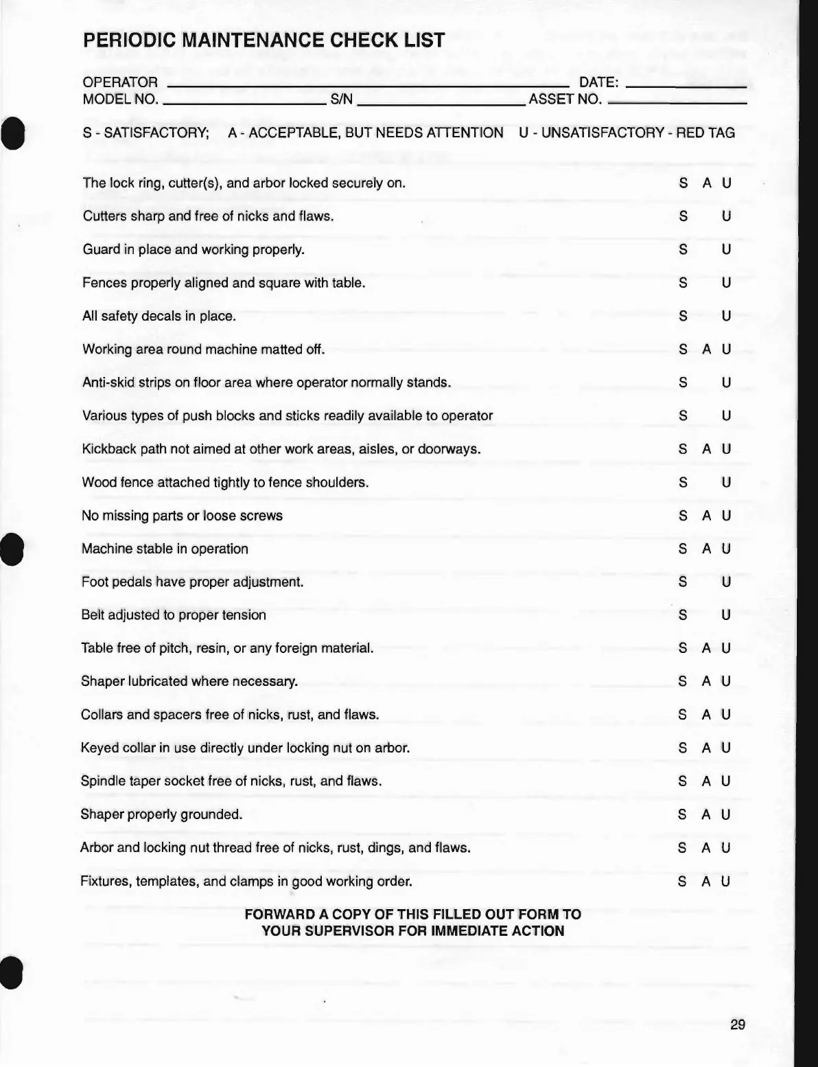 S - SATISFACTORY; A - ACCEPTABLE, BUT NEEDS ATTENTION U - UNSATISFACTORY - RED TAG