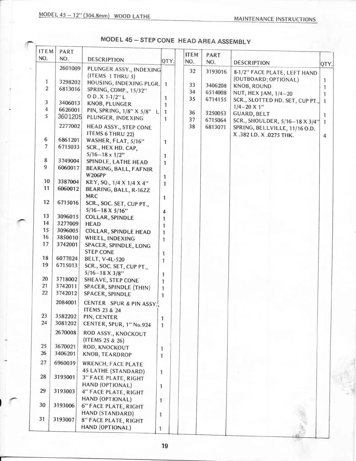 Powermatic 45 - Step Cone Head Assembly Parts List; Detailed Parts for Step Cone Head