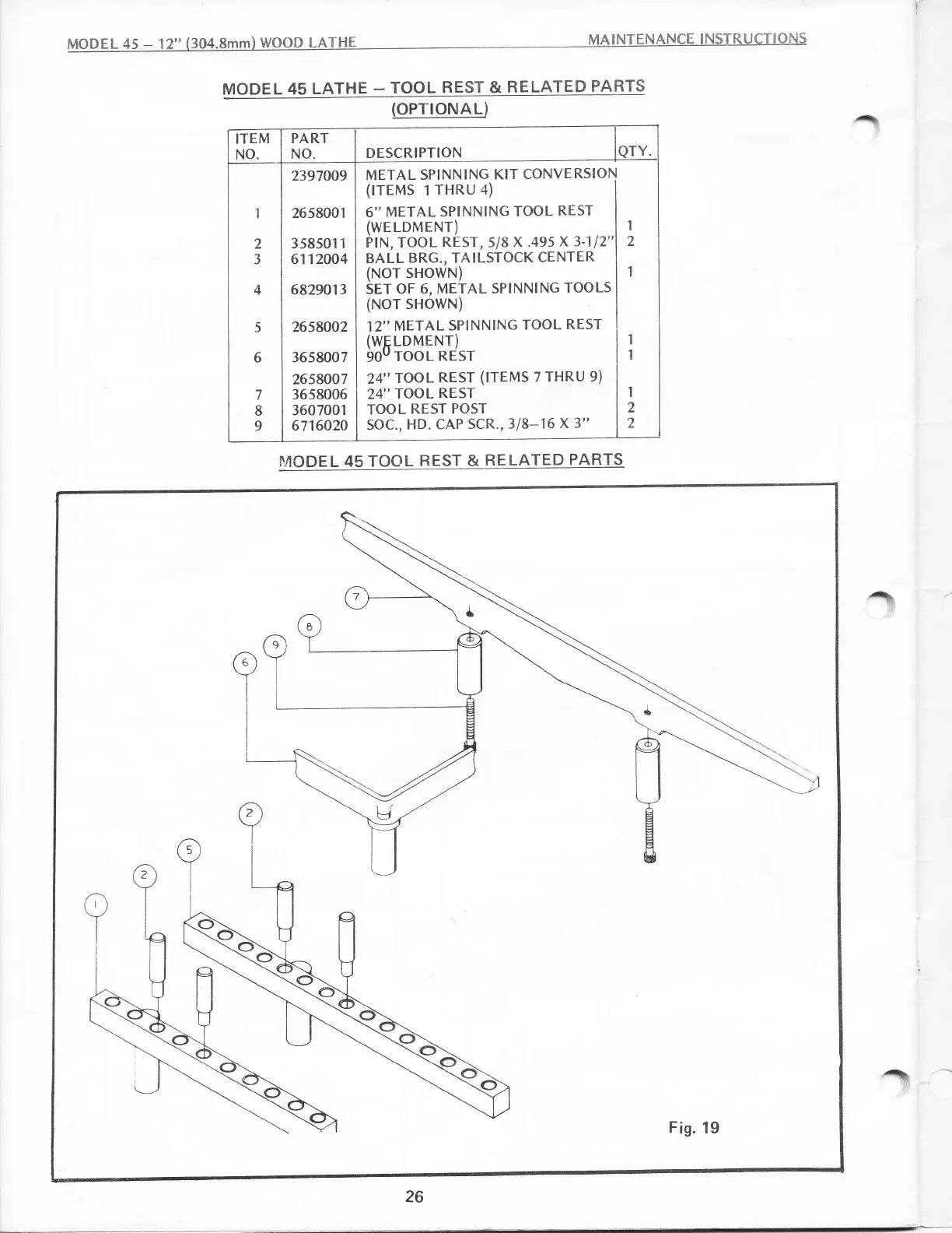 Powermatic 45 - Optional Tool Rest Parts; Metal Spinning Tool Rest Components