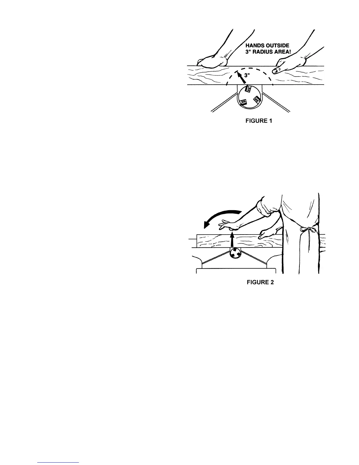 Avoid Kickback. "Pull-out" and the danger of kicked back stock can occur when the work piece has knots,