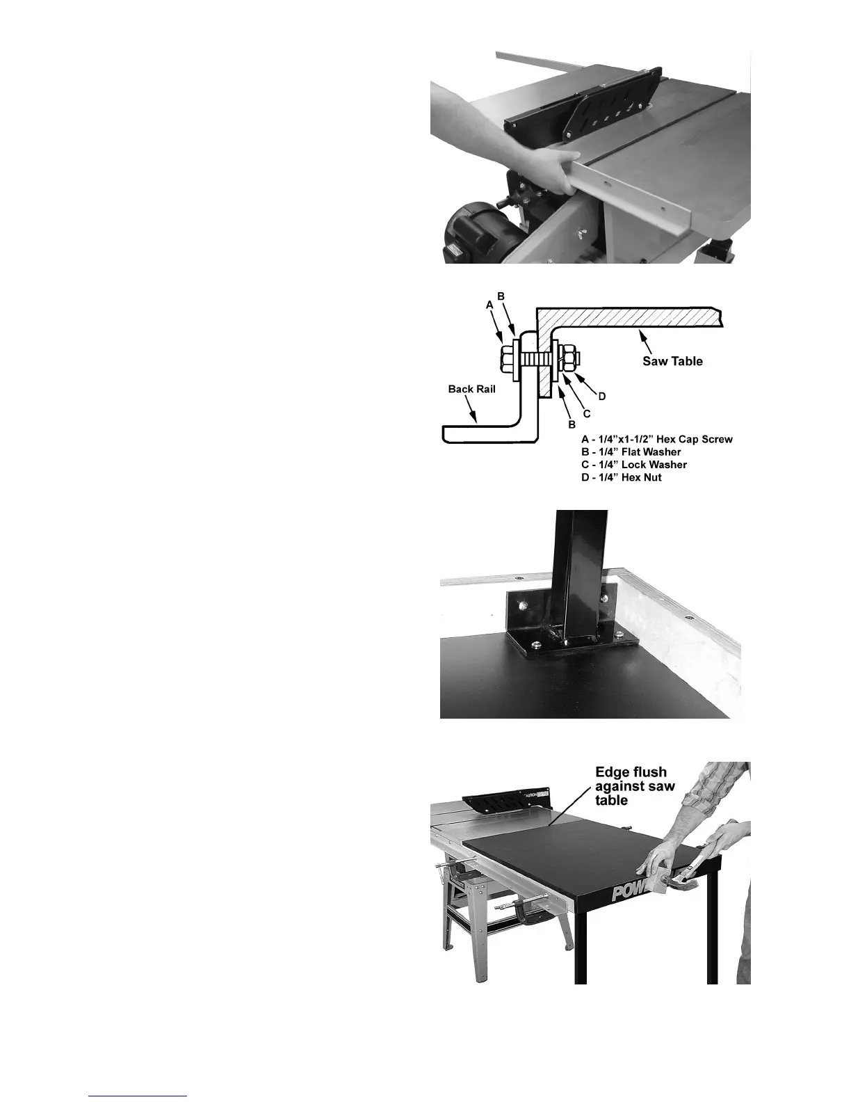 3. Secure the back rail to the holes in the saw table