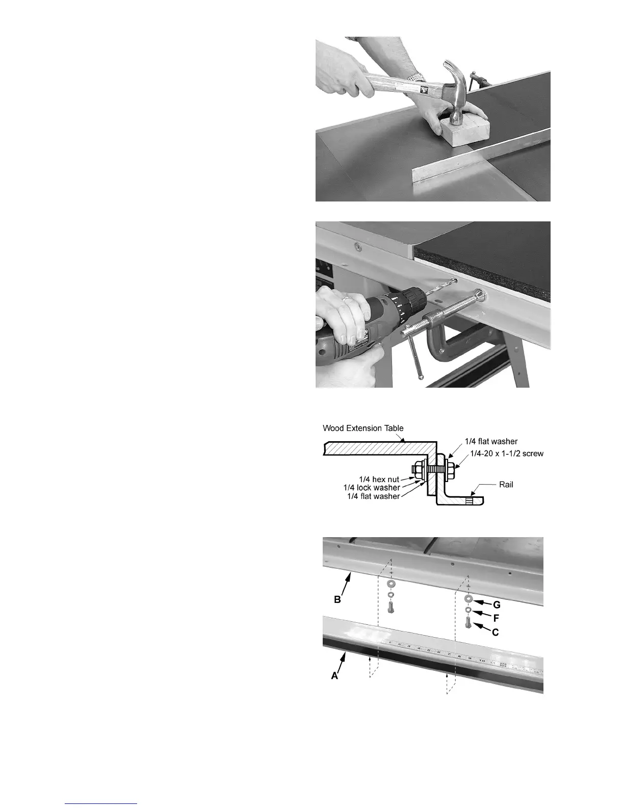 and saw table to ensure proper leveling. Tap