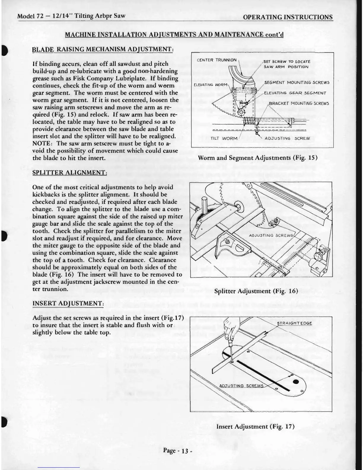Insert Adjustment (Fig. 17)