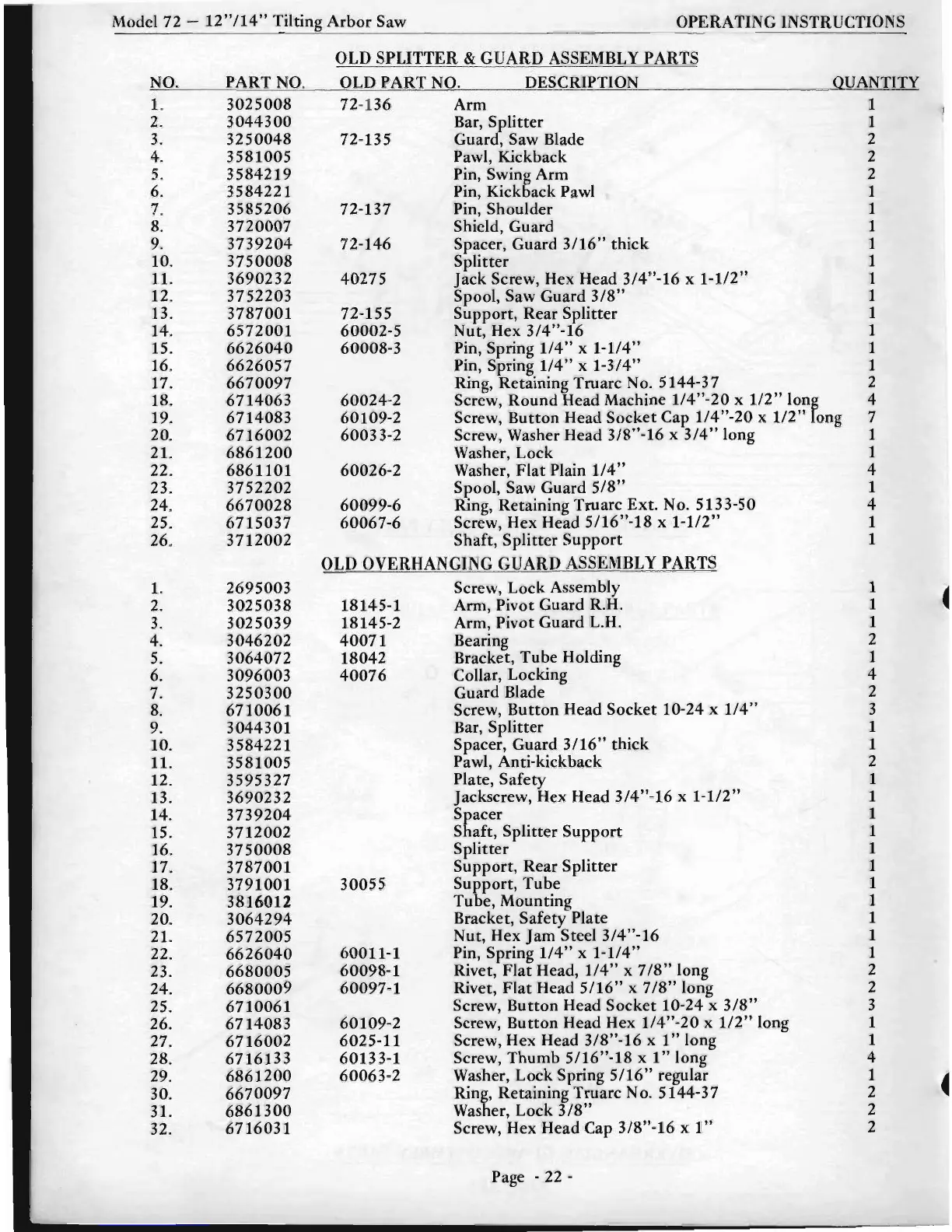 OLD OVERHANGING GUARD ASSEMBLY PARTS