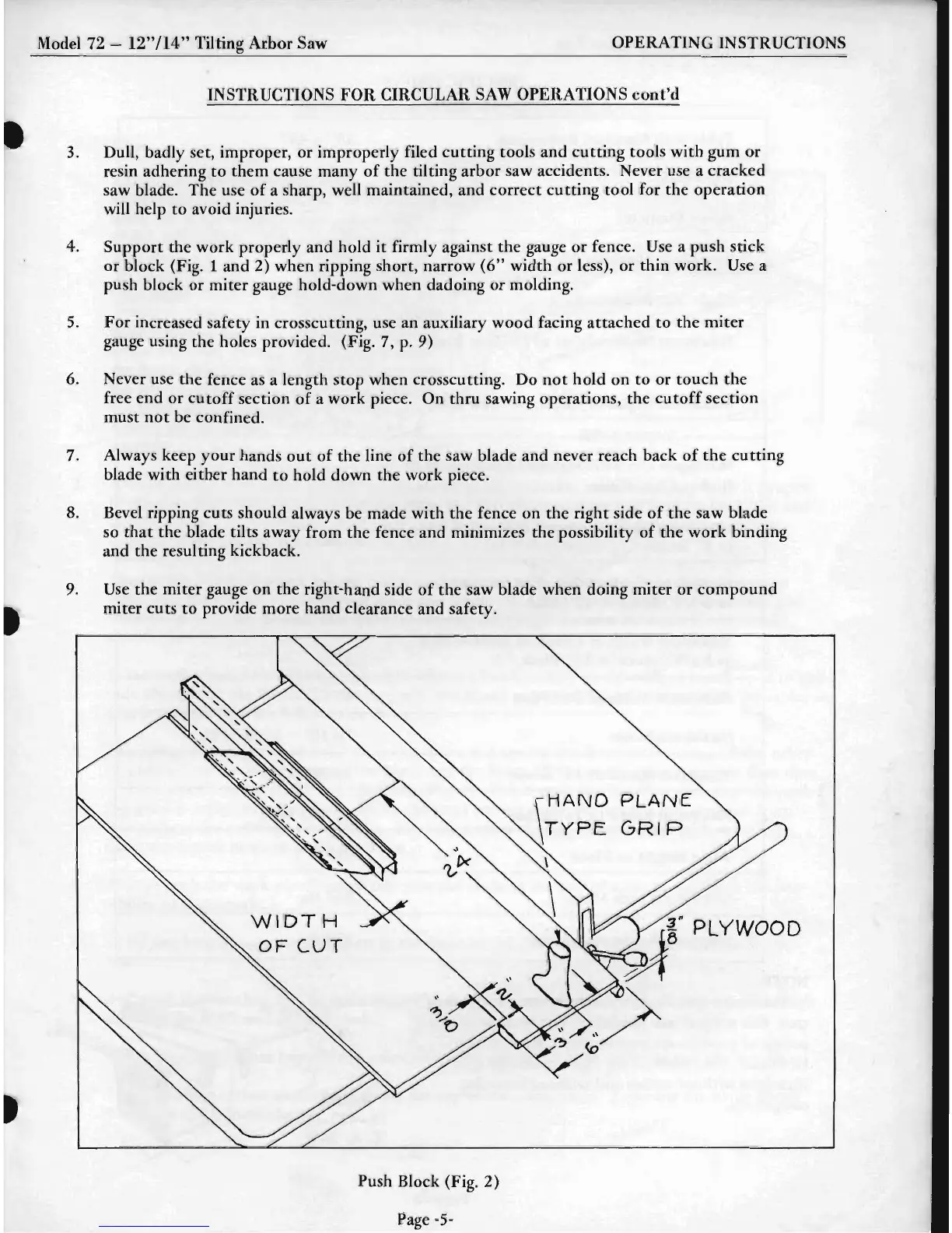 block (Fig. 1 and 2) when ripping short, narrow