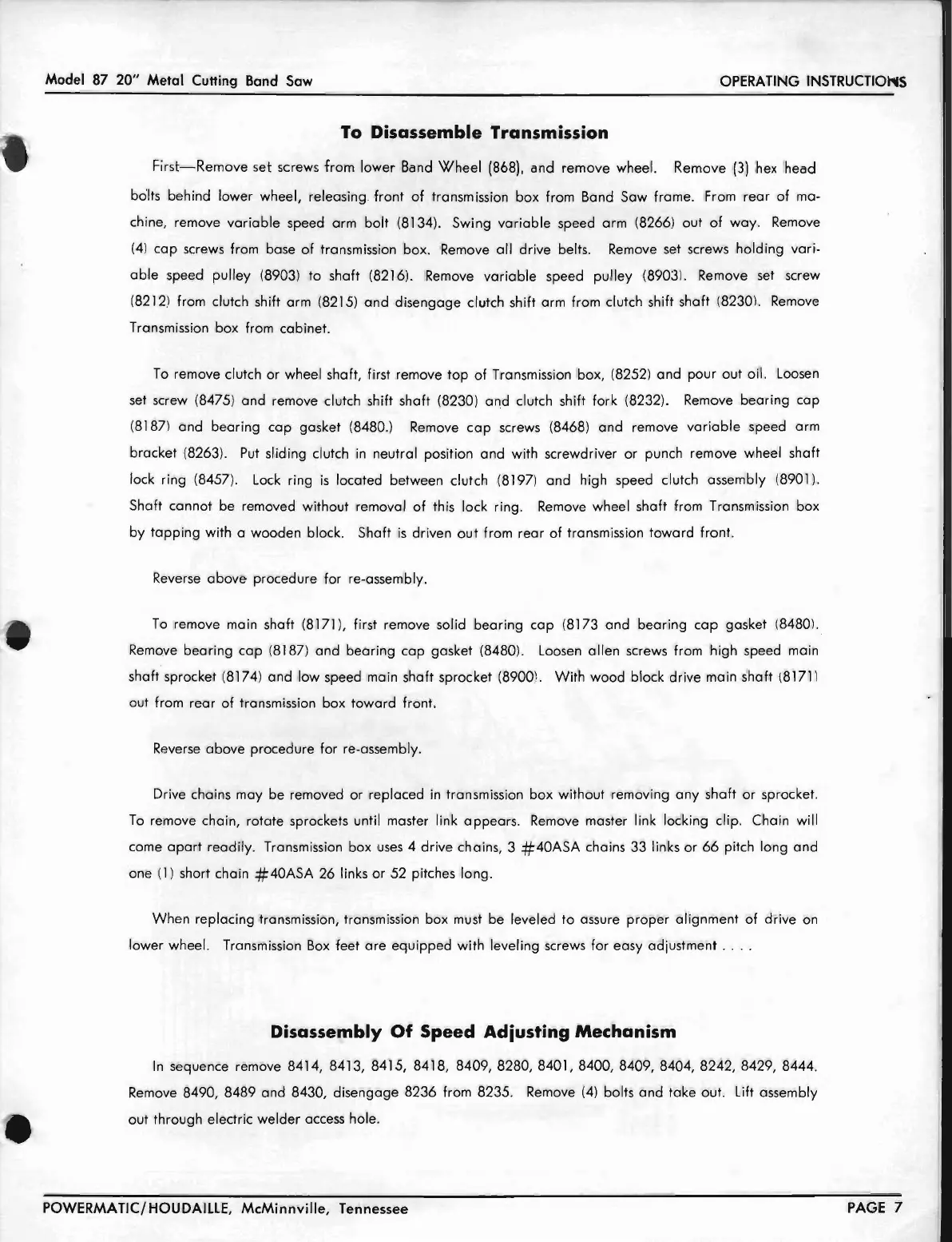 transmissien bex frem Band Saw frame. Frem rear