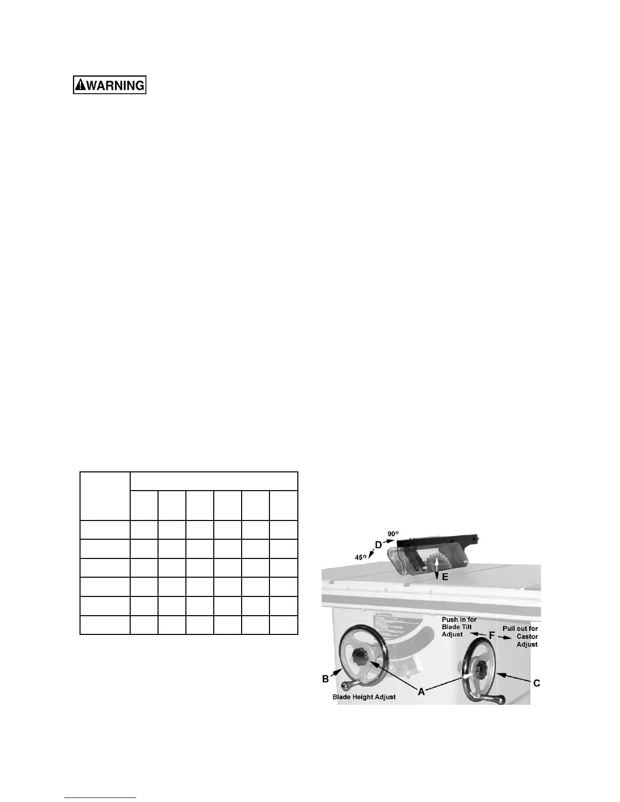 Turn clockwise to adjust the saw blade to