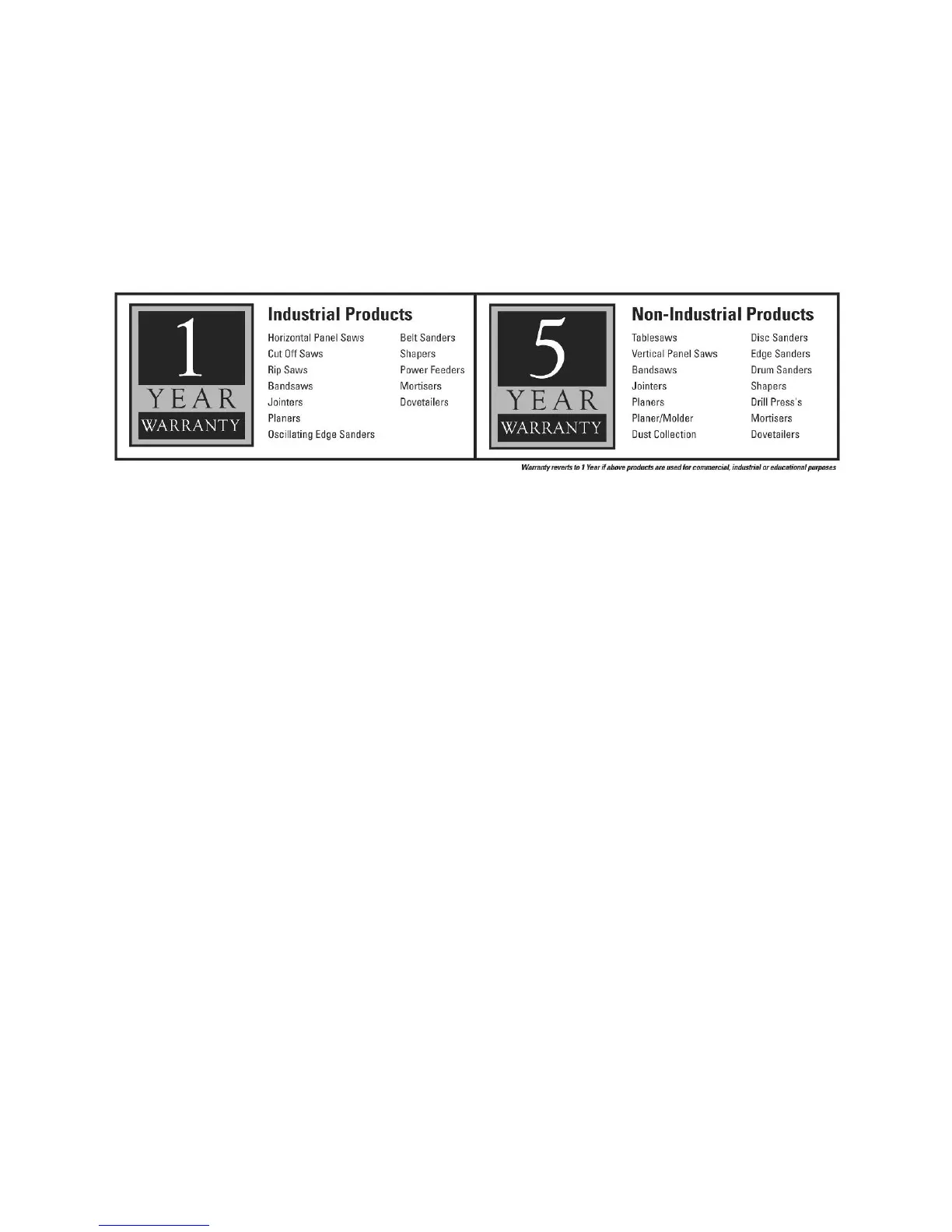 The general POWERMATIC warranty lasts for the time period specified in the product literature of each product.