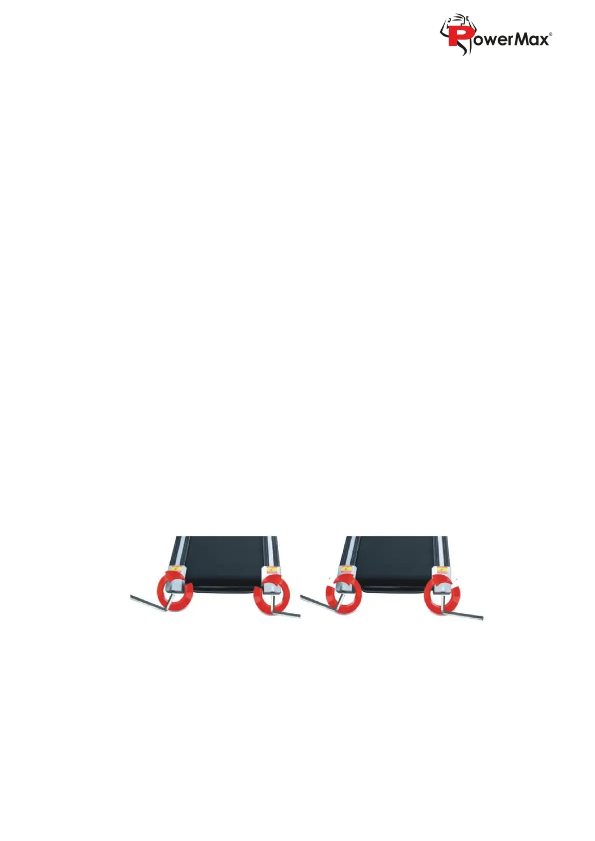 ⚫ If the running belt is closer to the right, rotate the right adjusting bolt with 1/2 turn