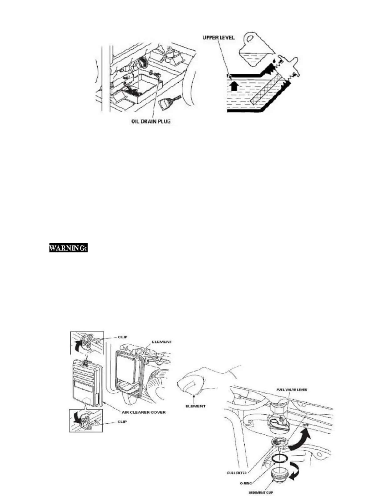 will smoke during initial startup if too much oil is left in the air cleaner element.
