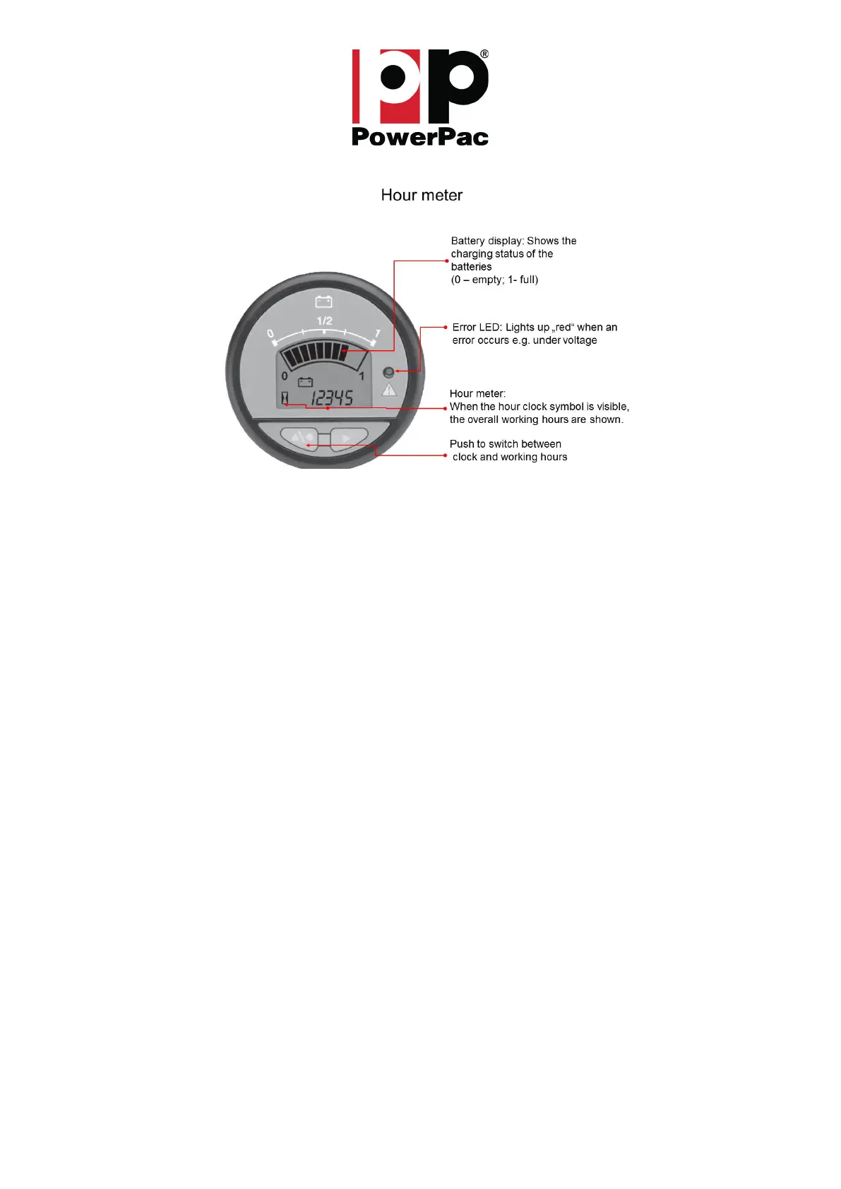 A capacity display and an error LED are integrated in the operating hour meter (Fig.: 4). The remaining