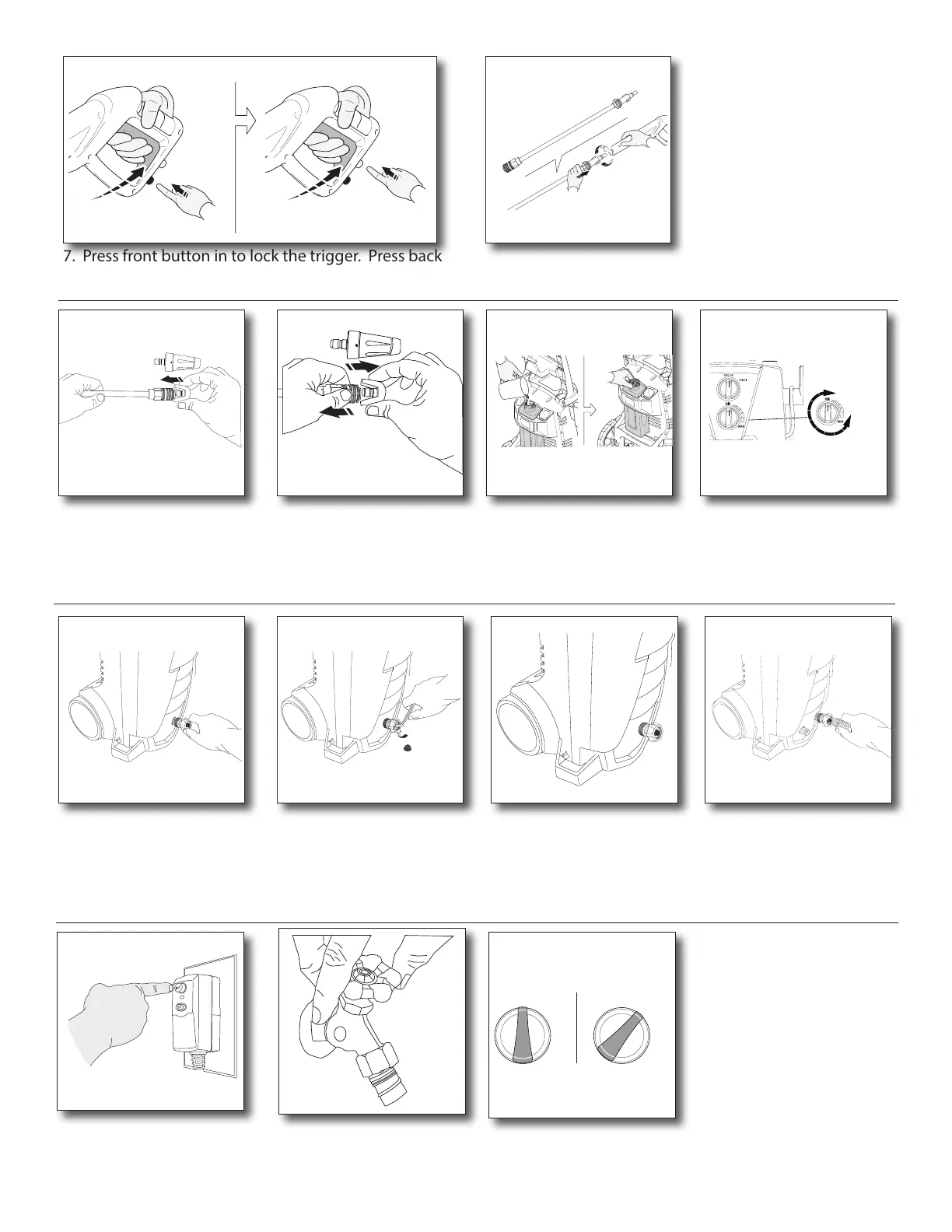 7. Press front button in to lock the trigger. Press back