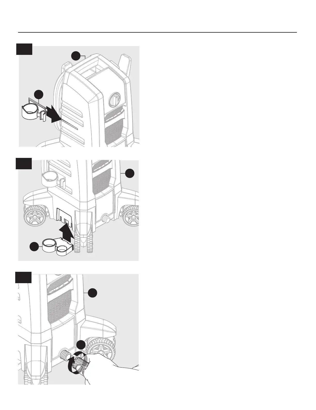 slots on bottom left side of power washer unit (D).