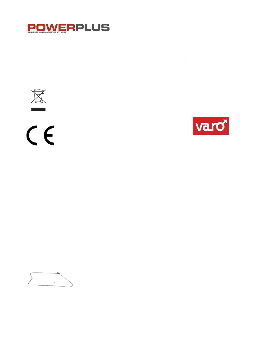 2000/14/EC Annex V LwA 101 dB(A) / 104 dB(A)