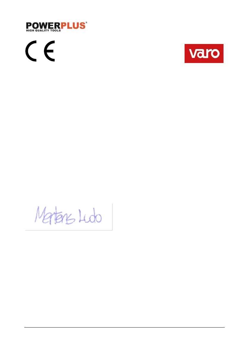 Oppbevarer av teknisk dokumentasjon: Philippe Vankerkhove, VARO – Vic. Van Rompuy N.V.