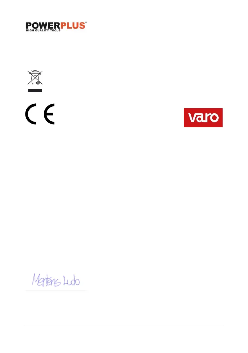 VARO – Vic. Van Rompuy N.V. - Joseph Van Instraat 9 - BE2500 Lier - BELGICKO vyhlasuje,
