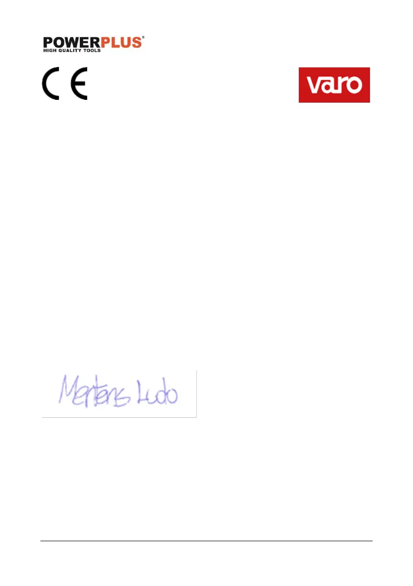 VARO Vic. Van Rompuy N.V. - Joseph Van Instraat 9 - BE2500 Lier - BELGIQUE, déclare que