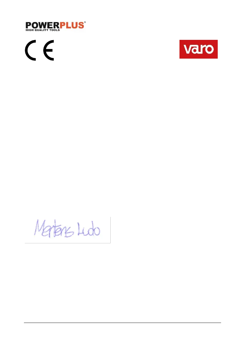 Hiermit erklären wir, VARO – Vic. Van Rompuy N.V., Joseph Van Instraat 9, B-2500 Lier,