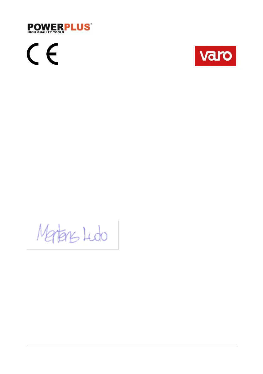 Detentor da Documentação Técnica: Philippe Vankerkhove, VARO – Vic. Van Rompuy N.V.
