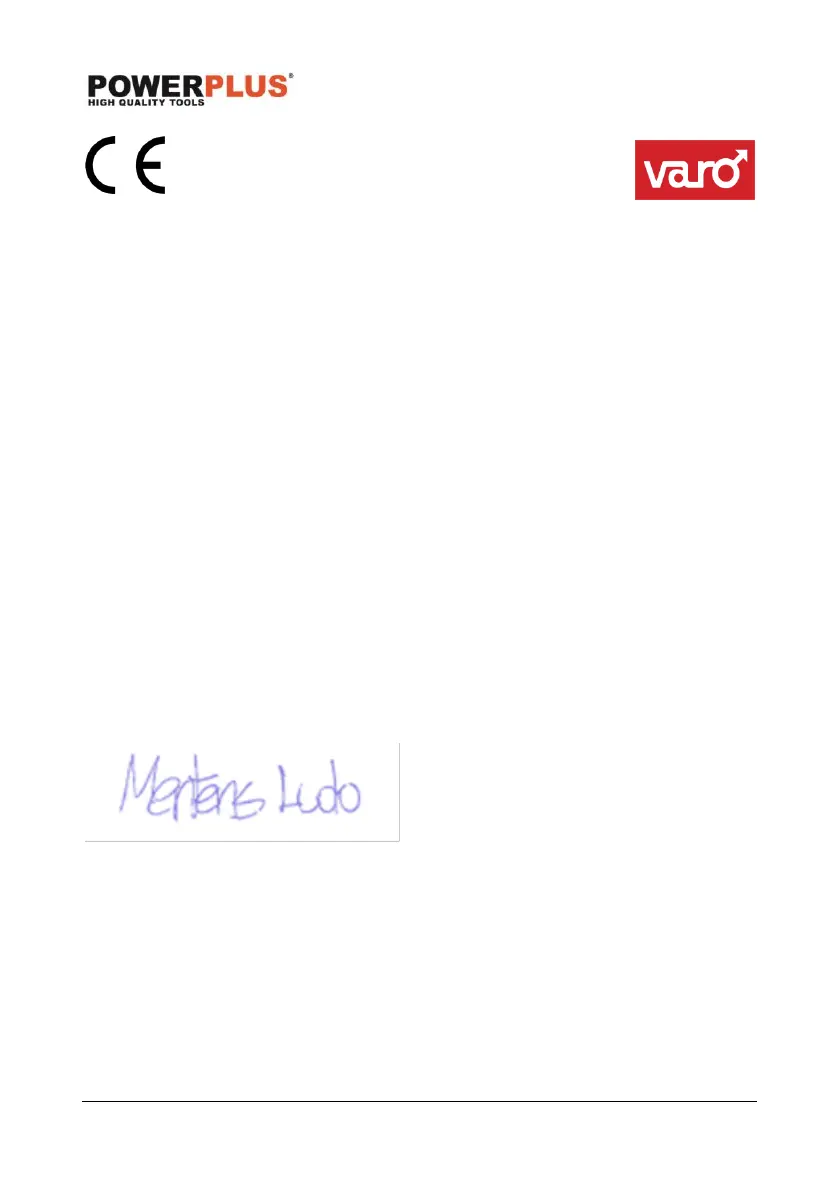 Hiermit erklären wir, VARO – Vic. Van Rompuy N.V., Joseph Van Instraat 9, B-2500 Lier,