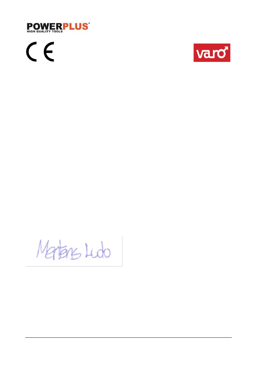 VARO – Vic. Van Rompuy N.V. - Joseph Van Instraat 9 - BE2500 Lier - BELGIUM, verklaart
