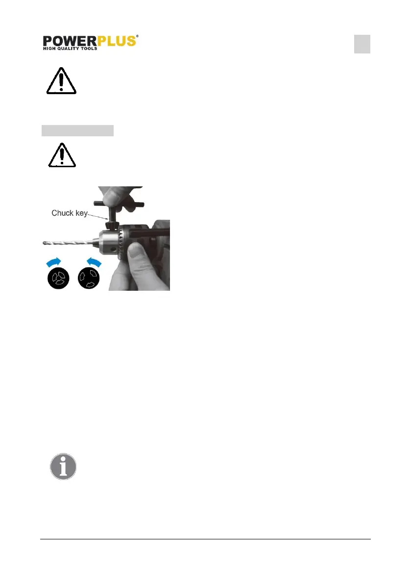Insert the desired drill or screwdriver bit in the chuck and turn the chuck key the opposite