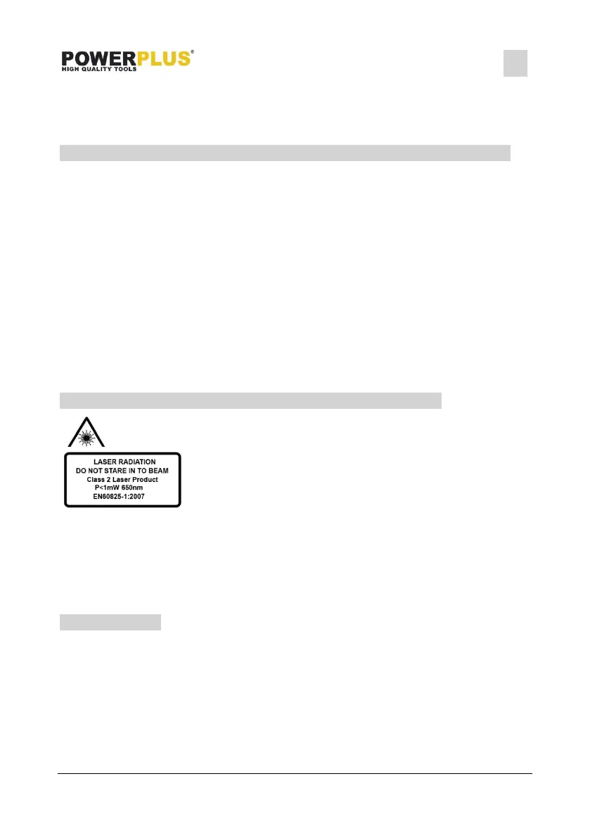 ▪ Tento laser vyhovuje třídě 2 podle EN 60825-1:2007. Nástroj neobsahuje žádné servisní