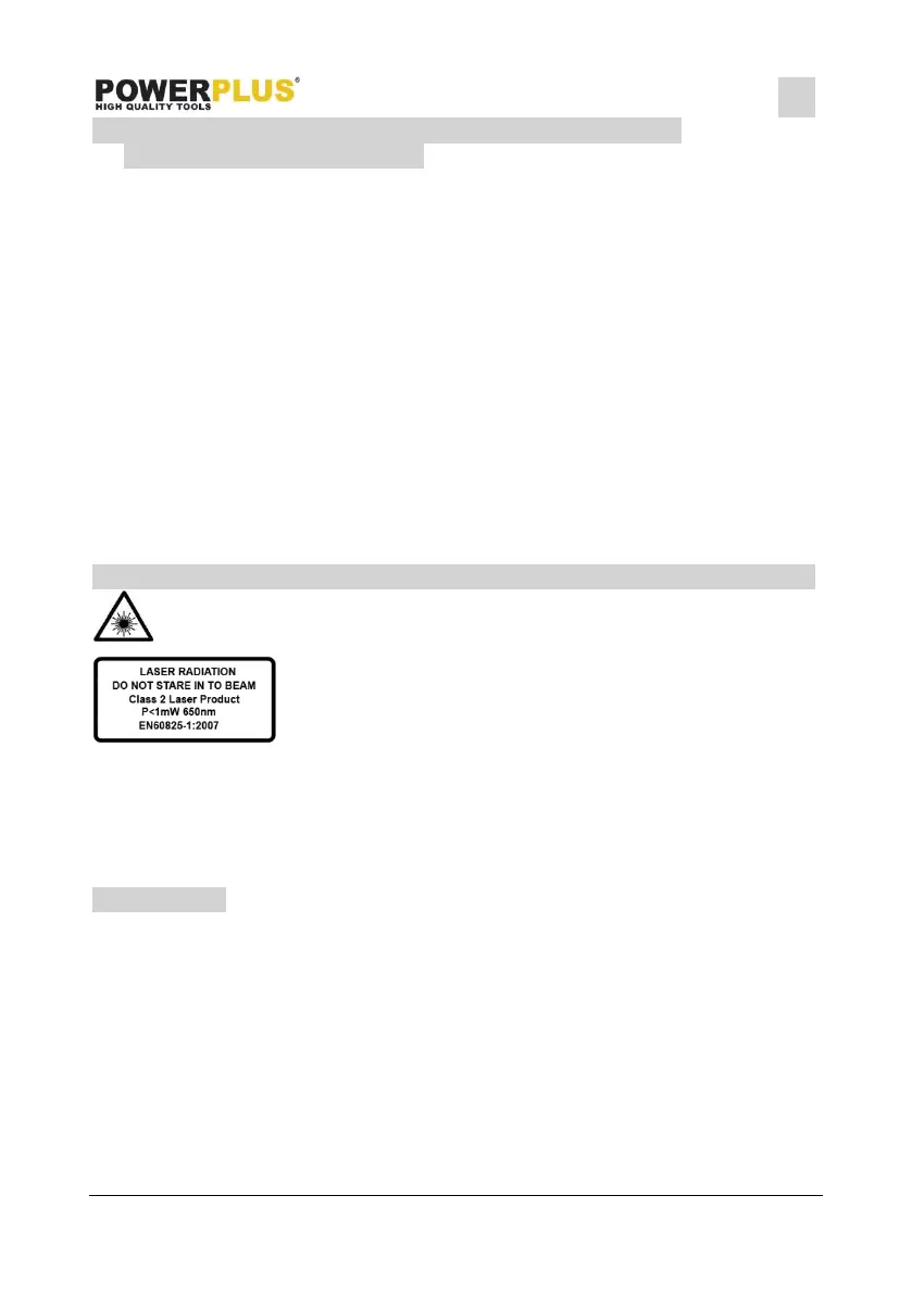 ▪ Laserul este în conformitate cu clasa 2, conform EN 60825-1:2007. Echipamentul nu
