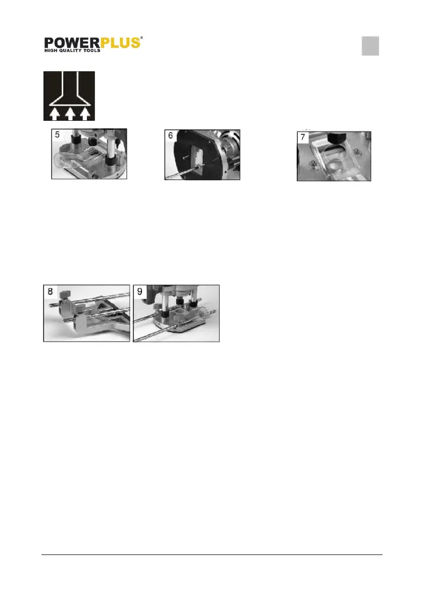 Loosen the locking screws and push the guide rods into the machine base (9). The parallel