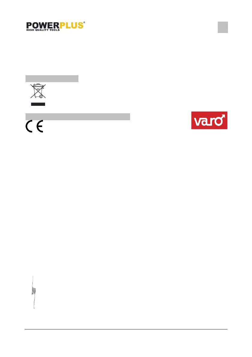 VARO N.V. - Joseph Van Instraat 9 - BE2500 Lier - BELGIUM, declares that,