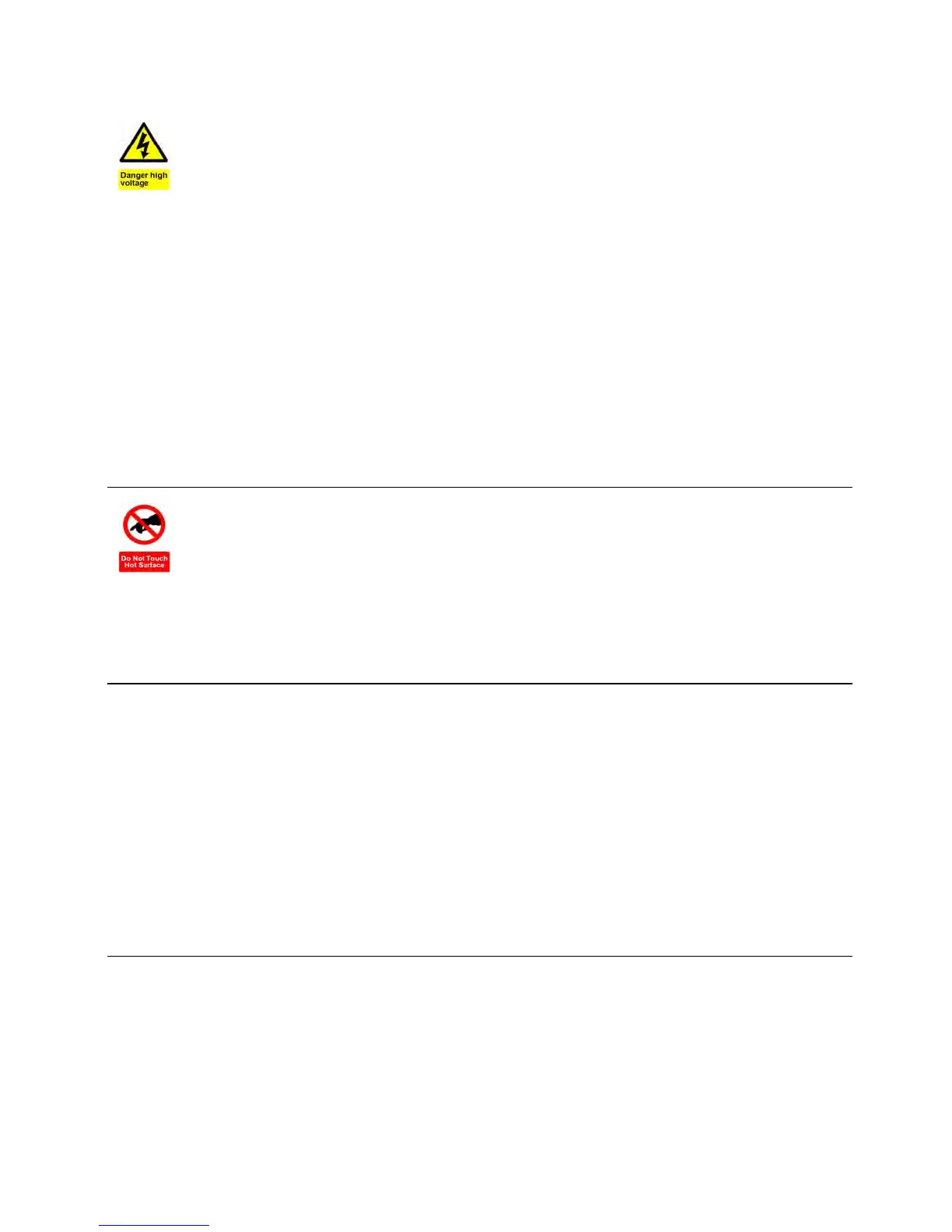 x Do not touch hot surfaces. Pay attention to warning labels on the generator identifying