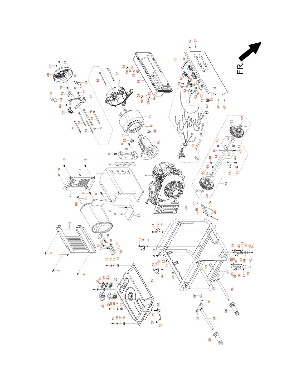 GENERATOR EXPLODED VIEW AND PARTS LIST