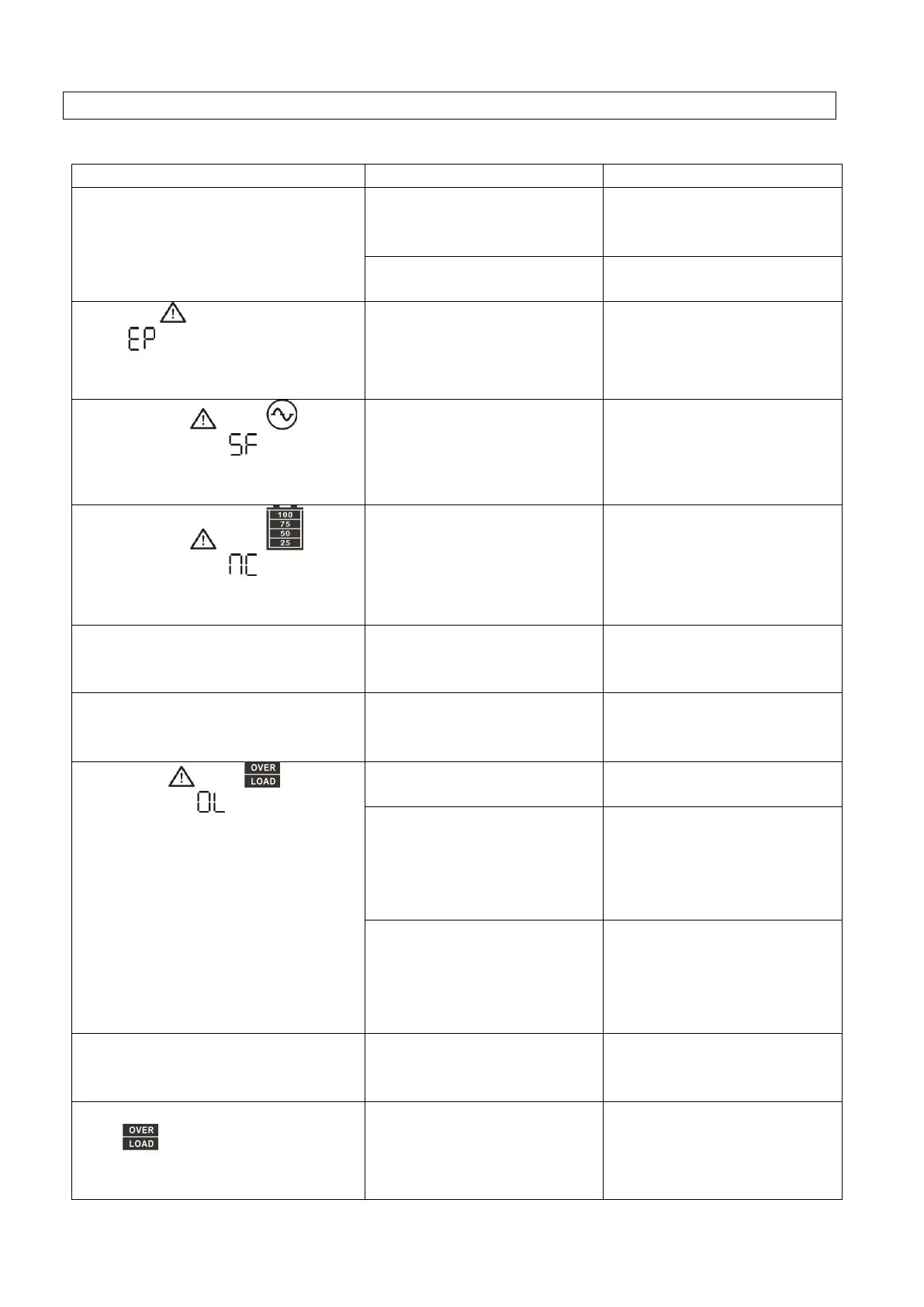 If the UPS system does not operate correctly, please solve the problem by using the table