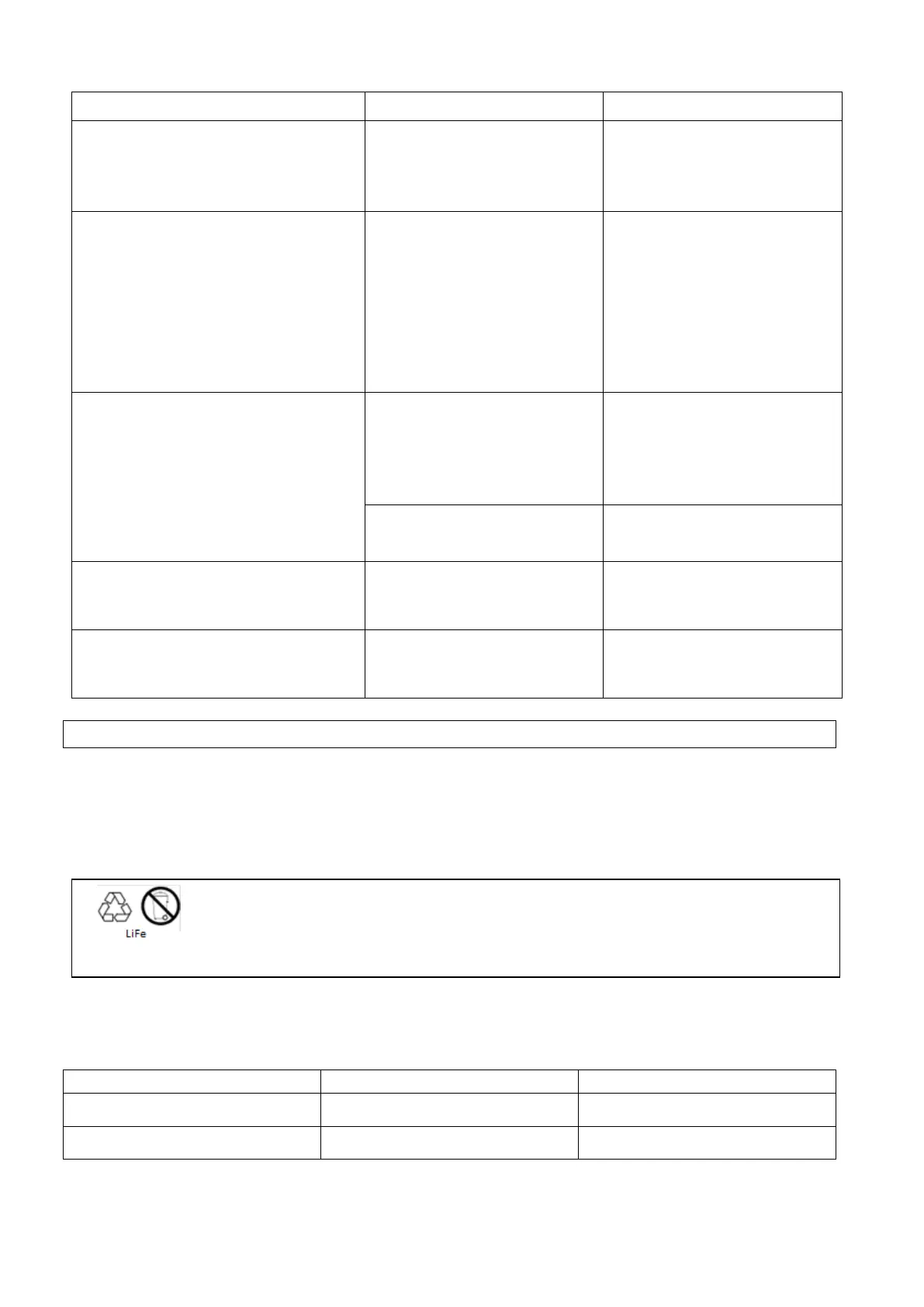 dry location. During storage, recharge the battery in accordance with the following table: